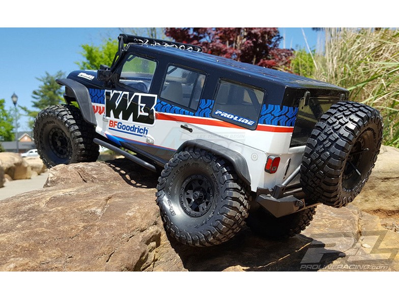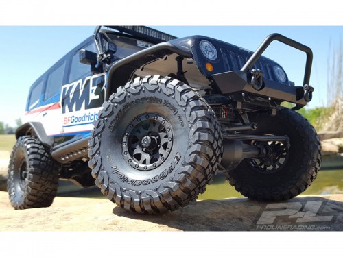Pro-Line was given early access to the design of the just announced full-size BFG Mud-Terrain T/A® KM3 tire and recreated it for the Scale Crawling community in 1.9” size! The Mud-Terrain T/A® KM3 (Key feature: Mud traction 3rd Generation) is BFGoodrich's Off-Road Maximum Traction tire with aggressive tread lugs that bite into loose or muddy surfaces and climb over slippery rocks.