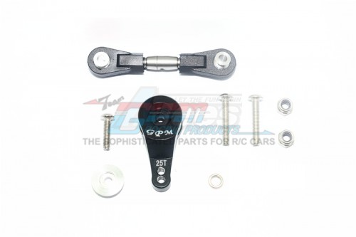 GPM Racing Aluminium Servo Horn With Stainless Steel Adjustable Steering Link - 9Pcs Set Black for Traxxas XO-01