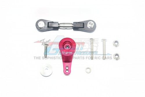 Aluminium Servo Horn With Stainless Steel Adjustable Steering Link - 9Pcs Set Red by GPM Racing