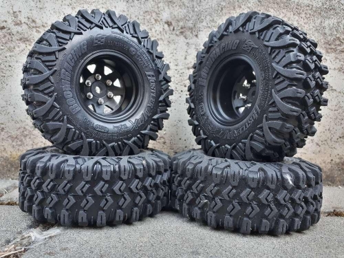 - Factory description: Boom Racing HUSTLER M/T Xtreme 1.55" BABY Rock Crawling Tires 3.74x1.3 SNAIL SLIME™ Compound W/ Open Cell Foams (Ultra Soft)