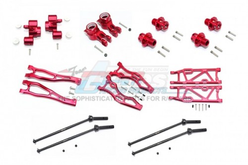 Aluminium F Upper+Lower Arms R Lower Arms F+R Knuckle Arms CVD 13MM Hex for 106005/106015/106018/106040T1- 56Pcs Set Red by GPM Racing
