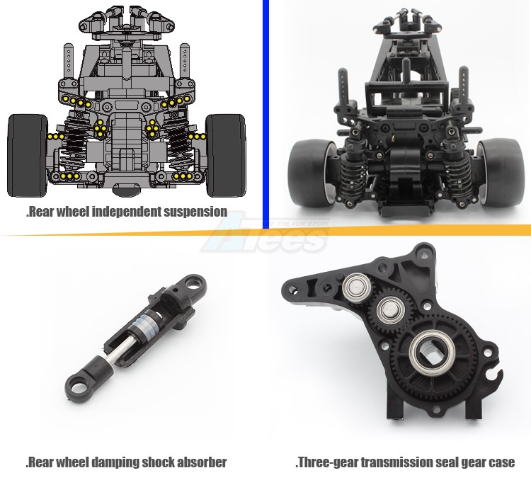 Three-gear transmission seal gear case Rear wheel independent suspension Front fork two-spring shock