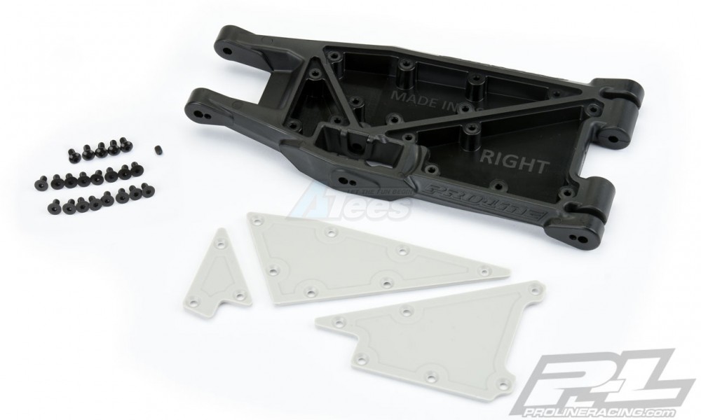 • This is the PRO-Arms Replacement Lower Right Arm. Do you need a replacement Lower Right Arm for your Pro-Line PRO-Arms Kit for your X-MAXX®? Then you came to the right place! This replacement arm includes 1 Lower Right Arm with the Stone Gray Arm Plate and Hardware to get you back up and running.