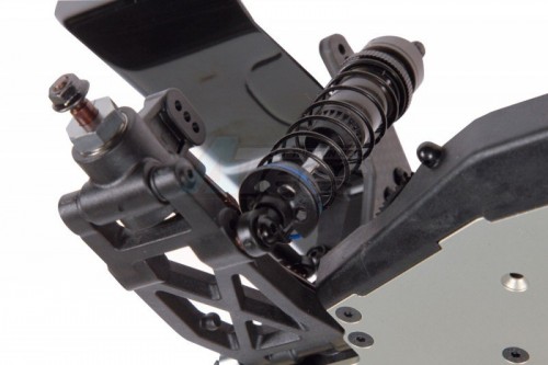 Carbon front and rear shock towers. The shock towers have multiple shock angle positions allowing drivers to fine-tune for varying track conditions. The carbon towers allow for some extra stiffness to help with overall grip.