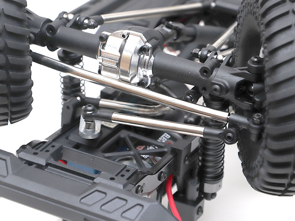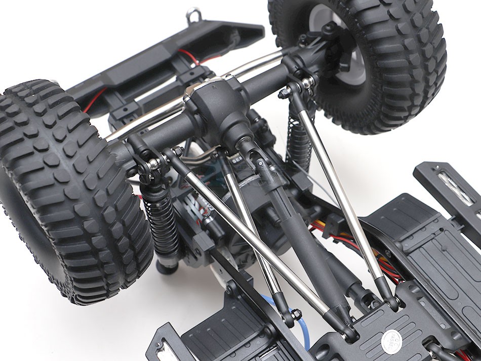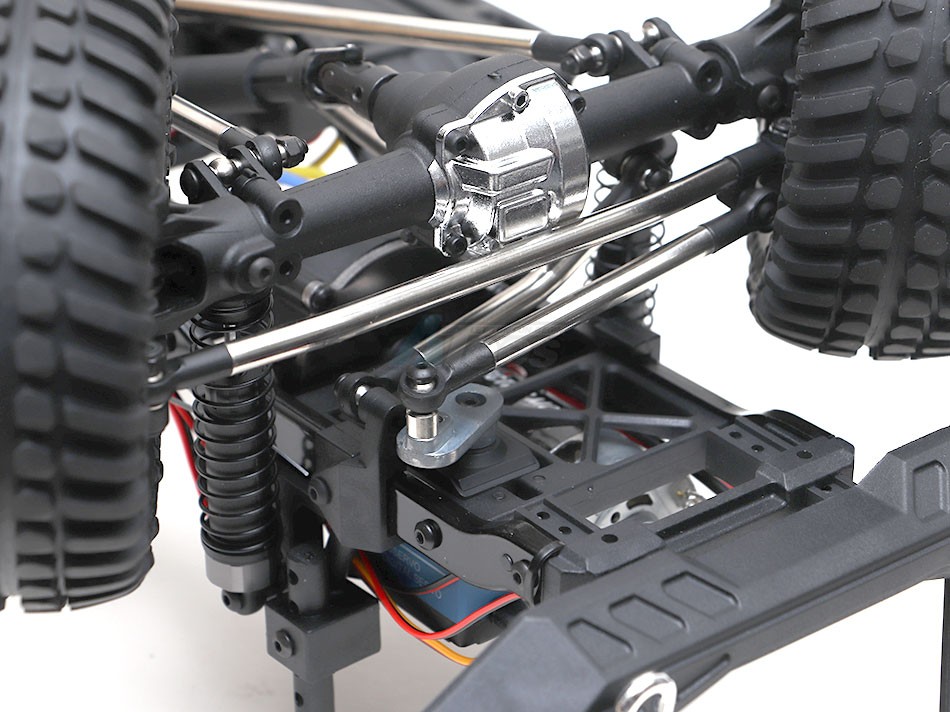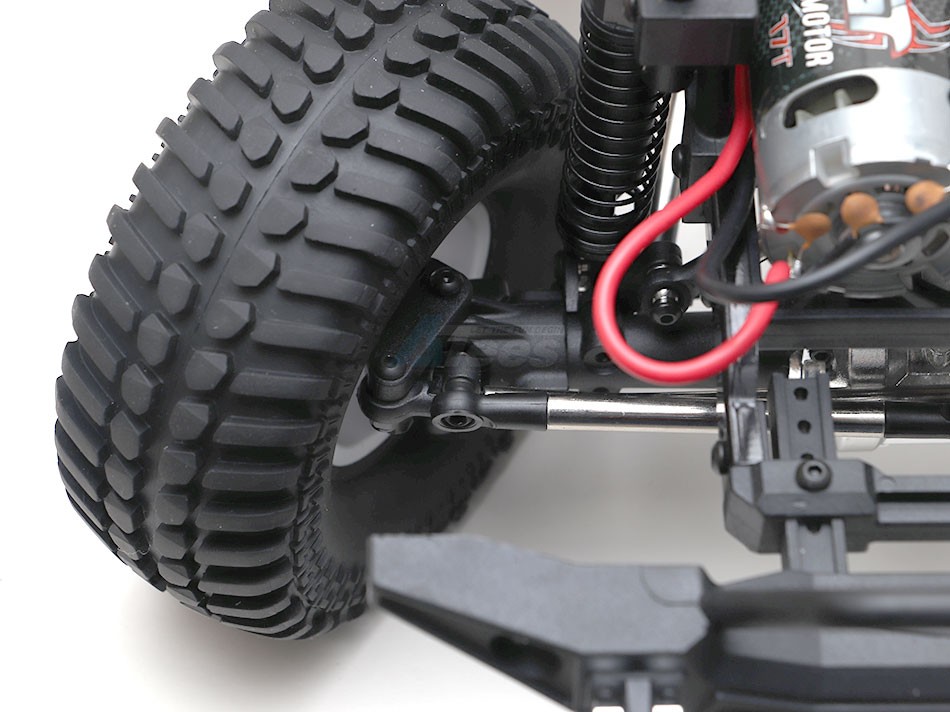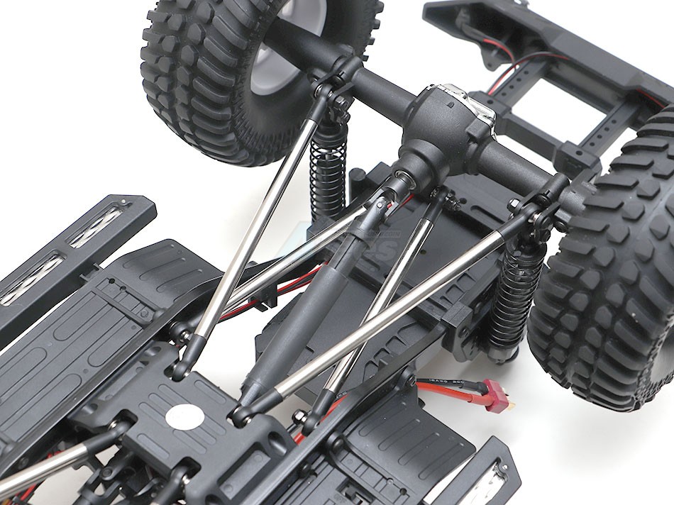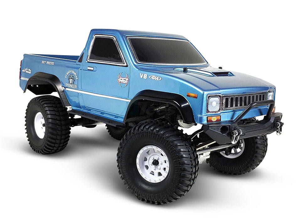 - This RGT 1/10 Pioneer 4WD Rock Crawler Pickup has a chassis mounted servo setup with panhard bar. It includes universal shafts which increases the maximum steering angle to 42 degrees. Reduction gear in the front with split transmission system with stable low-speed torque output.