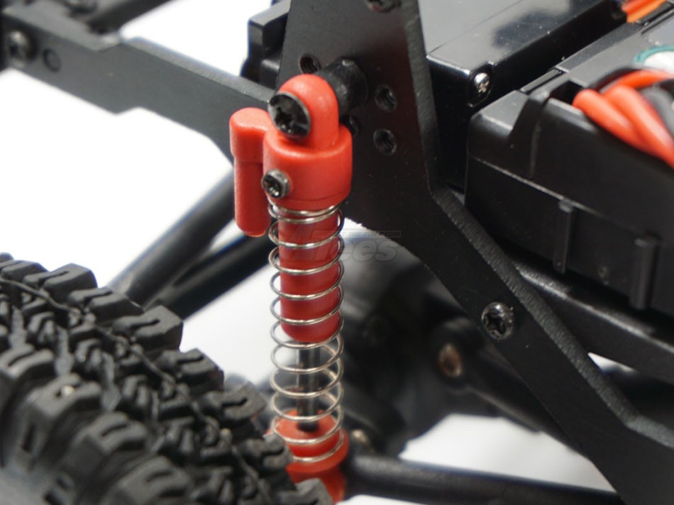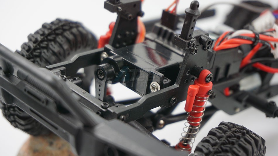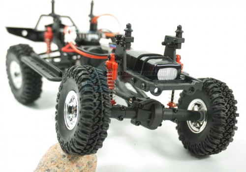 The CR-18 uses a proprietary transmission design that gives out incredible torque at low speed for great crawling experience. HobbyPlus restructured and designed the weight distribution of the vehicle by moving the gear box 15% forward. This forward placement gives more weight transfer to front of the truck which is great for crawling ability.