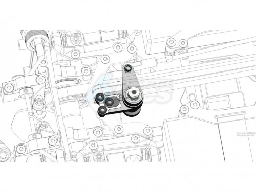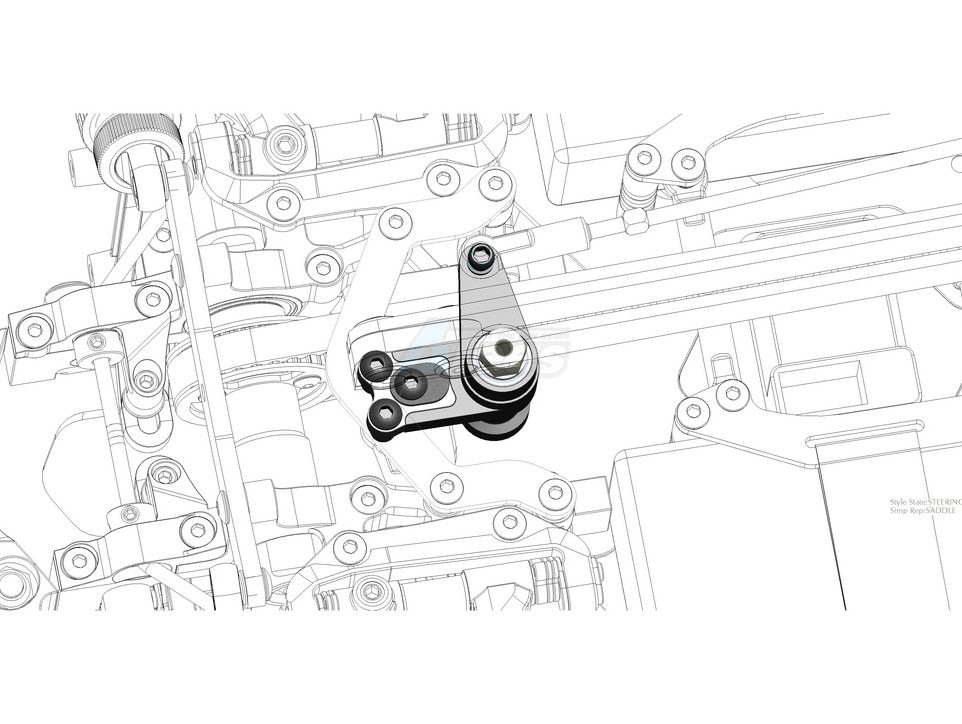The central mounted steering lever allows easy and fast Ackermann adjustment. The steering lever features a top mounted insert which can be used in 3 positions. Another 2 Ackermann positions are available on the steering blocks.