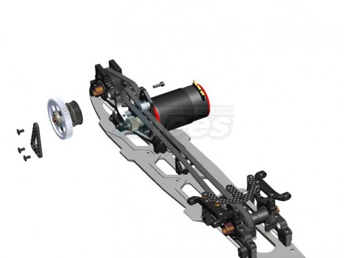Ultra-true, low-friction mid shaft assembly, featuring 2 big-size ball bearings. The assembly is easy to remove for spur gear changes and general maintenance.