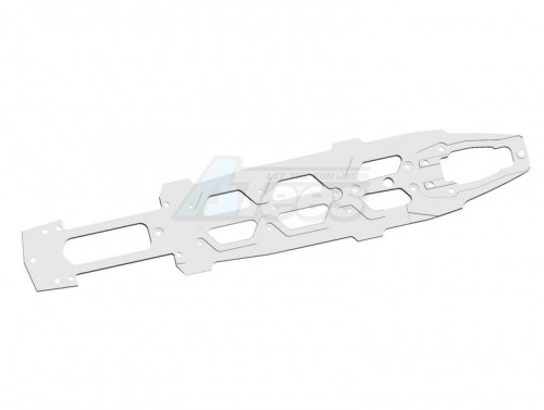 7075 T6 Aluminium 4mm chassis plate The 4mm aluminium chassis has perfect symmetrical shape for even flex and weight distribution. The ultra-narrow chassis is very light, while it still remains stiff in combination with the carbon vertical top deck backbone. The Viper 988E logo is laser engraved.