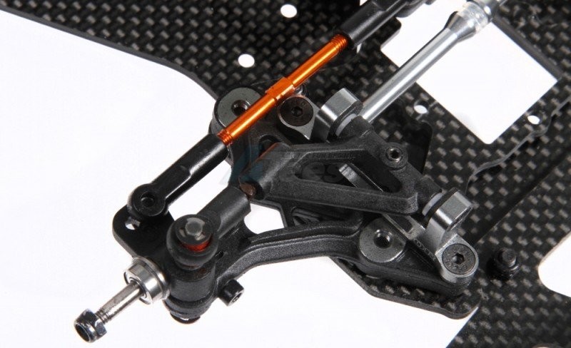 - The new balraced pivot link system with the servo on its side in longtudinal direction, mounted with 2 small and light servo brackets.