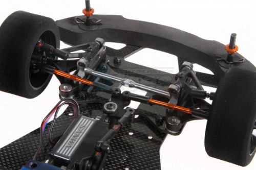The S100-LTR uses the same tube-system as on the S120-LTR. Precision machined aluminium coated tubes connected with small ball-links. This system plays a big part in how the car turns into a corner which can be adjusted through the use of different oils .