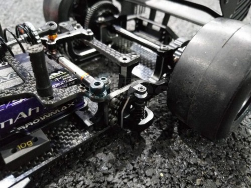 New ultra-low center of gravity rear pod. The angled rear plate gives torsional stiffness, protecting the rear shaft and bearings, while keeping all masses low in the pod. This increases rear grip of the car, and preventing grip roll in high grip conditions. At the same time, body touching with the pod is largely reduced.