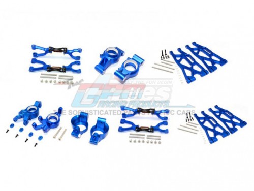 GPM Racing Aluminium Front&Rear Upper+Lower Arms+Front C Hubs+Front Kncukle Arms Set For X-MAXX - 92Pcs Set Blue for Traxxas XMAXX