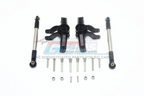 Aluminum Front Knuckle Arm + Stainless Steel Adjustable Tie Rods - 18Pcs Set Black