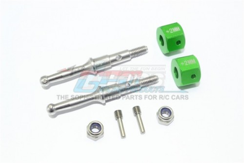 GPM Racing Stainless Steel Rear Wheel Shaft W. Aluminium Hex Adapter (+2MM) - 8Pcs Set Green for Tamiya T3-01 Dancing Rider