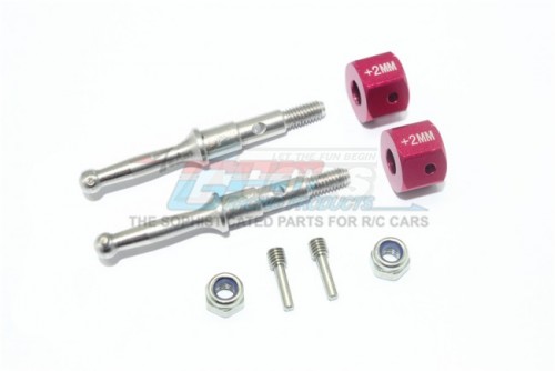 GPM Racing Stainless Steel Rear Wheel Shaft W. Aluminium Hex Adapter (+2MM) - 8Pcs Set Red for Tamiya T3-01 Dancing Rider