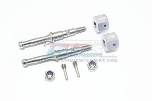 GPM Racing Stainless Steel Rear Wheel Shaft W. Aluminium Hex Adapter (+2MM) - 8Pcs Set Silver for Tamiya T3-01 Dancing Rider