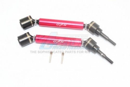 GPM Racing Harden Steel + Aluminium Front/Rear Adjustable CVD Drive Shaft - 4Pcs Set (Truck-89076-4) Red for Traxxas Maxx