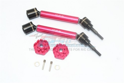GPM Racing Harden Steel + Aluminium Front/Rear Adjustable CVD Drive Shaft + Hex Adapter (Truck-89076-4) - 8Pcs Set Red for Traxxas Maxx
