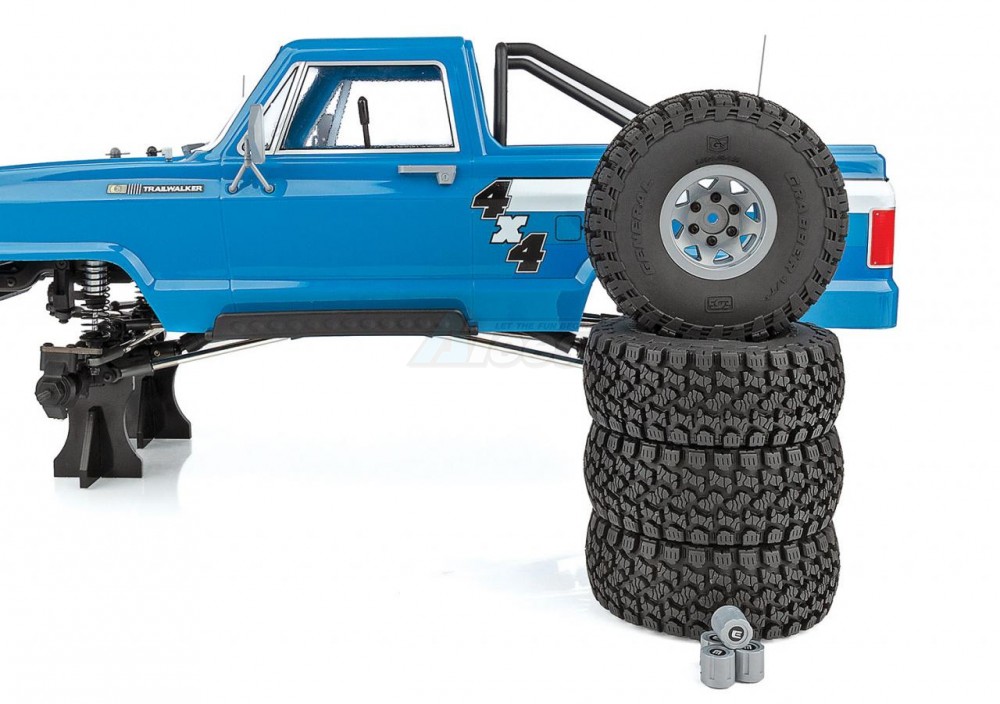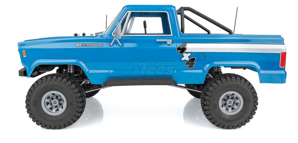 ALL IN THE DETAILS. No trail truck would be complete without a detailed and realistic looking body. The Trailwalker 4x4 is just that, with inspired styling from the 80's and 90's. The Trailwalker comes equipped with a high-strength polycarbonate body that has been pre-painted to look fresh off the showroom floor. The Trailwalker body was designed for both looks and function, featuring a single-piece design with roll bar, injection-molded bumper and D-rings, windshield wipers, folding mirrors, and front grill with working LEDs. The Trailwalker's pivoting side mirror design reduces the risk of losing mirrors while on trail. Drive your rig with confidence knowing it can handle navigating through tight technical rock features. OFFICIALLY LICENSED TIRES. Gripping the trail is a set of officially licensed General Grabber(TM) A/T X tires molded in a high-performance, soft compound rubber. The General Grabber(TM) A/T tires are mounted on three-piece 1.55" beadlock wheels. No more worrying if your RTR tires will come unglued. The Trailwalker 4x4 is ready to tackle the elements -- your journey begins here. General Grabber(TM) is a trademark of CONTINENTAL TIRE NORTH AMERICA, INC. CORPORATION