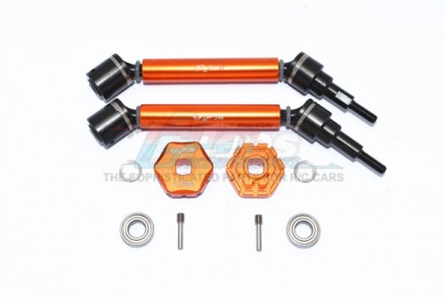 GPM Racing Harden Steel + Aluminium Front/Rear Adjustable CVD Drive Shaft + Hex Adapter (+2MM) (Truck-89076-4) - 10Pcs Set Orange for Traxxas Maxx