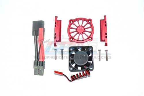 Aluminium Motor Heatsink With Cooling Fan - 9Pcs Set Red by GPM Racing