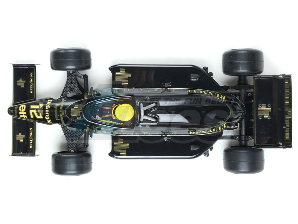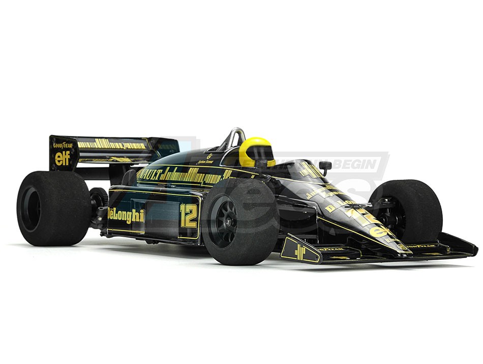 - The history behind our latest Carisma Racing release is ingrained in Formula One folklore. The Lotus 98T was a truly innovative F1 car designed for Team Lotus by Gèrard Ducarouge and Martin Ogilvie. It was raced by the legendary Brazilian Ayrton Senna, and his teammate, Scottish driver Johnny Dumfries in the 1986 Formula One World Championships. The chassis featured a low Carbon fiber, Kevlar and Alloy monocoque design, a Renault EF15B turbocharged V6 engine and a six-speed, manual Hewland racing gearbox. There are unconfirmed reports that the Renault EF15B produced in excess of 1000 HP at unrestricted boost pressure, making it one of the most powerful and iconic engines ever used in Formula 1. Other innovations the 98T brought to F1 included a two-stage ride height adjustment, water injection and advanced microcomputer-controlled fuel injection, that for its day was revolutionary. The car fittingly had its debut at the 1986 Brazilian Grand Prix, when Senna promptly took second place. Over the season it attained 8 pole positions, 8 podium positions, and 2 wins. The 98T was the last Lotus car in history to carry John Player's famous black and gold colors. On many levels, this car truly epitomizes the 1980's F1, and Carisma Racings latest releases a fitting tribute to both the vehicle itself and the driving legends of that era of motorsport.