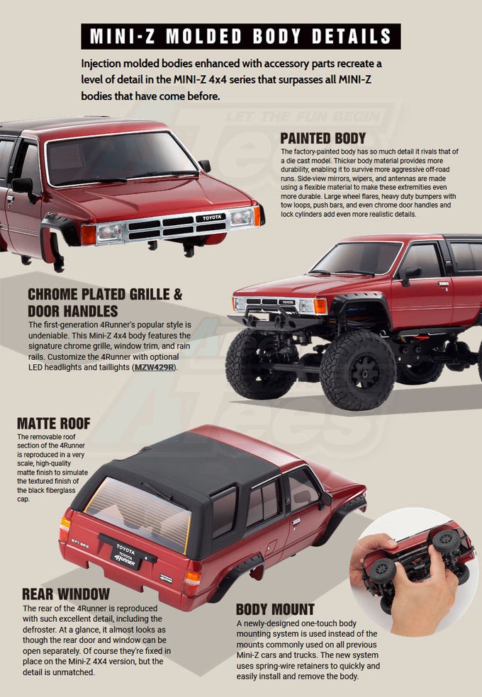 - Factory description: Kyosho Kyosho Mini Z 4X4 Mini-Z 4X4 Toyota 4 Runner (HiLux Surf) Dark Metallic Grey Ready Set