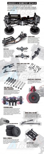 - The combination of the highly-detailed body and a completely new 4x4 chassis design opens up new levels of performance, well beyond anything RC enthusiasts have ever seen from a mini crawler.
