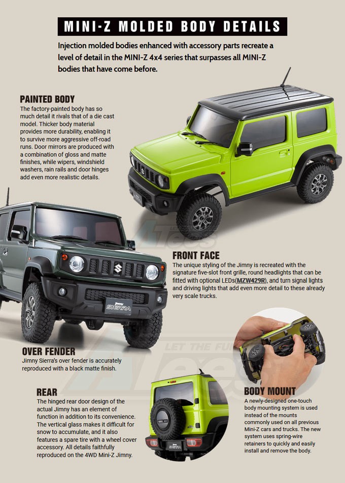 - Factory description: Kyosho Mini Z 4X4 Mini-Z 4X4 Suzuki Jimny Sierra Jungle Green Ready Set