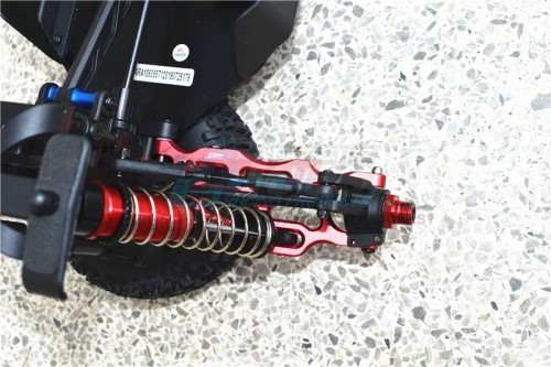 Major advantages of upgrading to this part/product : 1.Aluminum 6061 T6 is a light material with high tensile strength and great durability during extreme RC action. Delrin collars are designed and hand-installed to eliminate the gap and friction in order to reach the best performance, in harmony with the rest of the vehicle. 2.Compare to the original design, this product has a fashionable hollow design. 3. Multiple positioning holes for users to adjust the angle of the dampers.