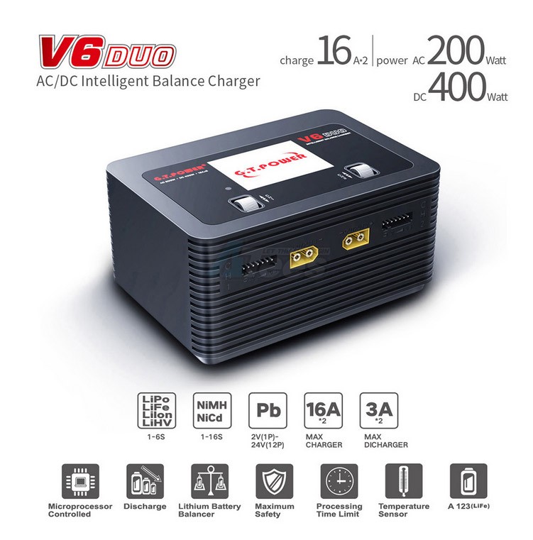 G.T. Power is a high-tech company specialized in the design, development and manufacture of RC electronics and accessories, including a full series of multifunctional balance charger/discharger, servo tester, RC car LED, LiPo battery voltage meters, AC power supply, UBEC, and multifunctional wires.