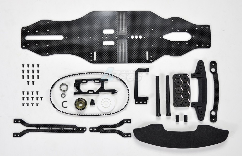 Thanks to the Arrowmax Medius XRAY T4 FWD conversion kit it is possible to transform an old XRAY T4 into a Fronti in style. The kit features all the needed parts for the conversion from touring 4WD into Fronti 2WD.