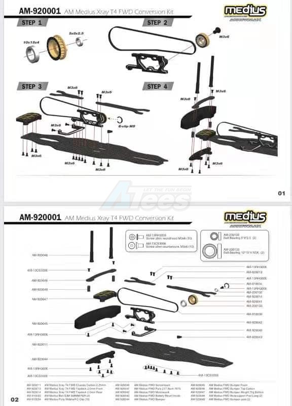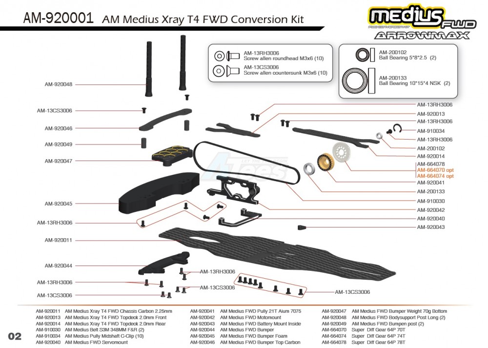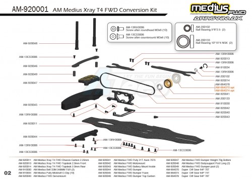 - Arrowmax Medius Xray T4 FWD Conversion Kit (Chassis 7075 )