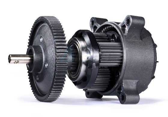 Compact gearbox tranfers power to all 4 wheels and the small size enables lower battery position for better center of gravity.