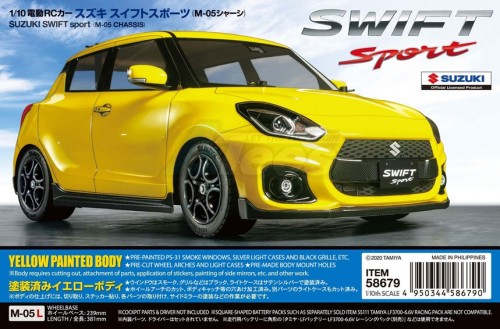 - Factory description: Tamiya M05 1/10 Suzuki Swift Sport (M-05 chassis)
