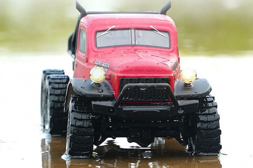 The specially designed high-torque gearbox delivers the torque of the 100T motor to all 6 wheels via a proven 6x6 drive system. Expert-tuned spring shocks allow the vehicle to articulate while the anodized aluminum chassis rails maintain chassis stiffness. Soft, big-block tires on bead locks give the vehicle maximum traction over challenging terrain.