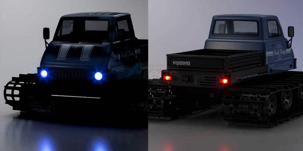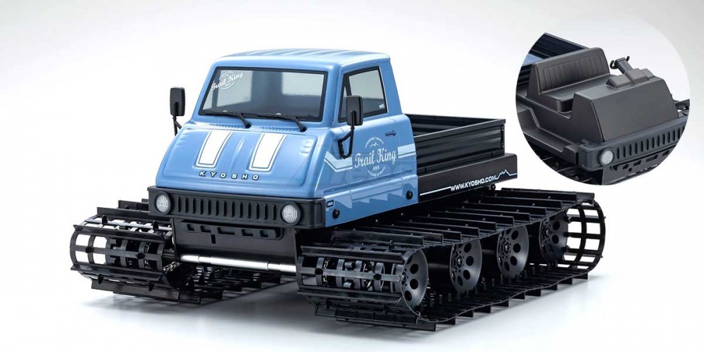 The newest edition to the 1/12 scale electric belt vehicle series further enhances your outdoor experience. Kyosho’s long selling ‘Blizzard’ that has stood the test of time with a legion of loyal fans, has been used as a base for the new ‘Trail King’. Among its many features, a completely new body design creates the retro feel of a hard working machine.
