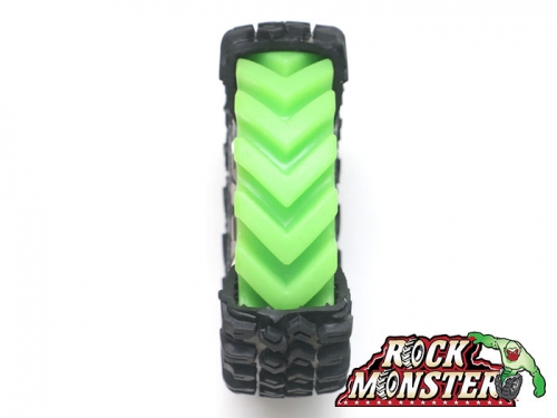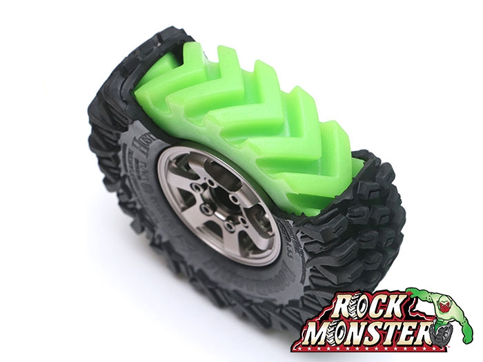 The original Rock Monster was designed and developed in Arizona, USA by entrepreneur Michael Giles. In the early days, silicone inserts were made to order and customized to each tire's specification. The idea behind a silicone insert is that foam inserts couldn't hold the weight of increasingly heavier crawler rigs with smaller tires. At the same time, folks started to experiment with hard bodies/small tires to build better-looking scale rigs. Figuring out how to hold the weight of a heavy rig without deforming the tires was a mystery back then.