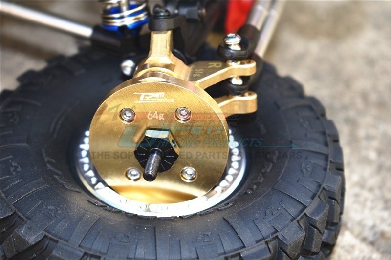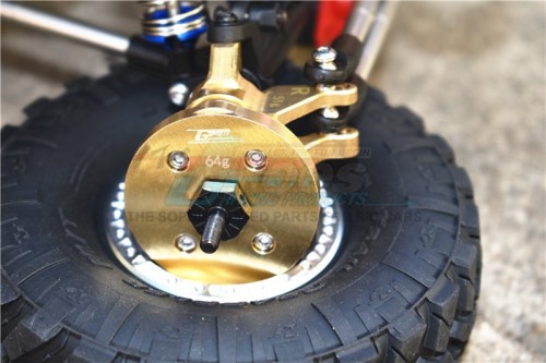 Major advantages of upgrading to this part/product : 1.made by brass to increase the weight of each wheel of 64 grams to stabilize the wjeel,enlarge the angle of crawling ,especially when the car is dig into the low lying area landspace ,grab the ground firmly and smoothly drive back to level. 2.The outer diameter of the product is 43mm, and it can be installed only when the inner diameter of the wheel is larger than 43mm