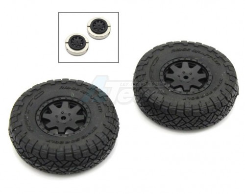 - A pair of pre-glued tires and wheels assembled with a weight inside. Using on the front ensures excellent traction for hill climbing.