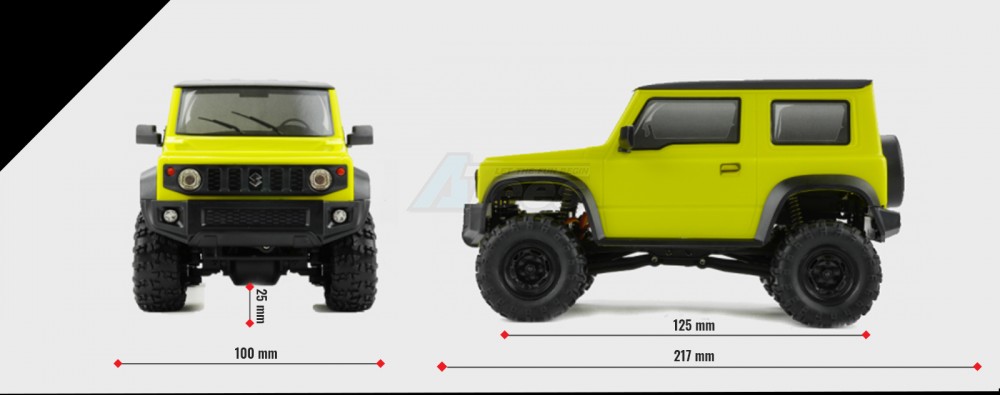 The 1/24th Suzuki Jimny is a Gen 2 Rig. It sports Locked Axles, 2.4Ghz KD PROPO Radio. With Smart Throttle 1-2-3 (Beginner mode, Intermediate, and Expert Throttle Profiles), KD PROPO RX/ESC with Smart Drag brake, 5V Port for FPV module and LED Port Ready, Gen 2 Motor (with Protection Circuit), Gen 2 Servo Saver, Hobby Grade High Torque Micro Servo, 5v USB Charger and 130MAH NiMH Battery, and AA Batteries for the Tx are also included!