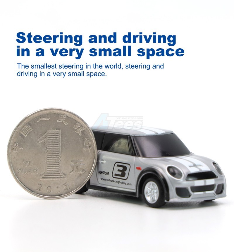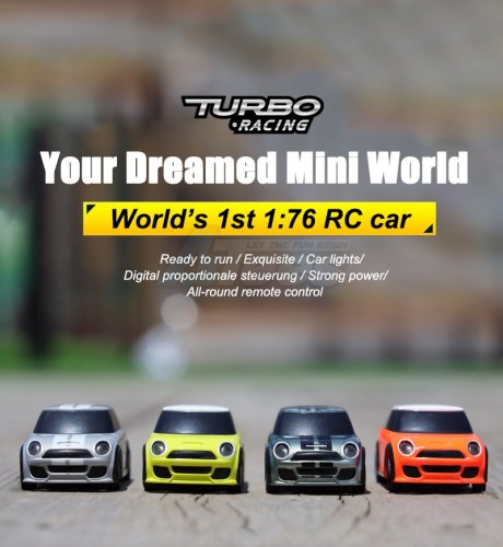 - Introducing the world's first finger-sized proportional radio-controlled car - the Turbo Racing 1:76 Mini On-Road RC car. For the first time in the radio control hobby industry, an R/C car of such size can be controlled with such precision and finesse. Thanks to the all-new patented potentiometer steering design, being the smallest of its kind, allows you the ability to control the vehicle exactly the way you want.