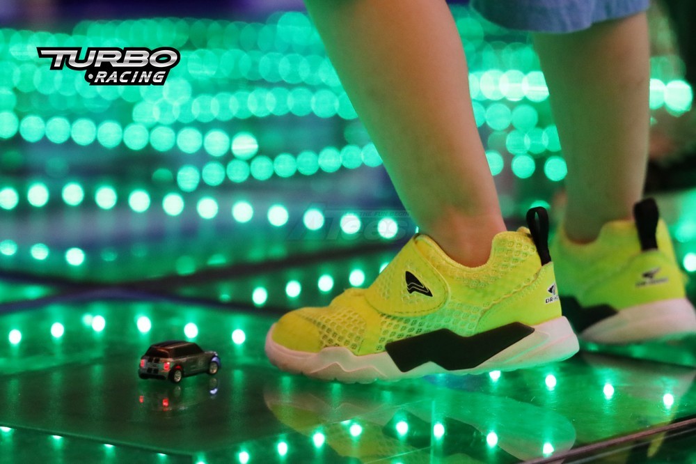 The Turbo Racing 2.4Ghz radio system allows for up to five players at a time. Each charge can run for up to 40 minutes. It has accurate proportional steering as you would expect from bigger RC cars, and charges like your smartphone by using Type C connection. Great fun for racing with friends and family in the house, in the office with colleagues, or just about anywhere you can think of!