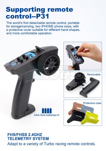 - Turbo Racing P31 is a detachable remote controller for easy storage and carrying. It comes with a protective cover suitable for different hand shapes and allows for comfortable operation