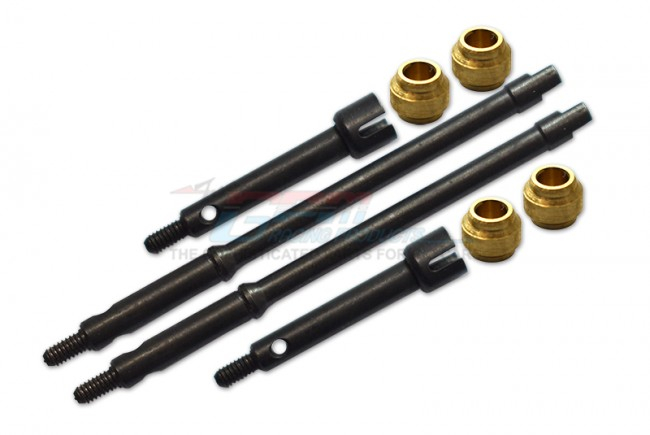 GPM Racing Harden Steel #45 Front CVD Joint + Rear Drive Shaft + Copper Collar - 8Pcs Set Black for Axial SCX24