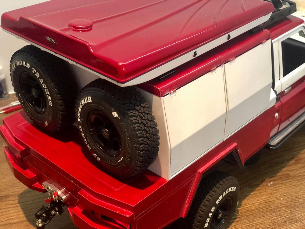 - This is a Team Raffee Co. Flat Bed Tray with Two Half Canopies for the Boom Racing BRX01 used with the Killerbody Toyota Land Cruiser LC70 body.