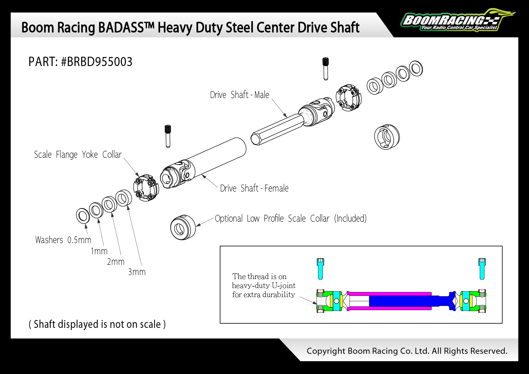 - Factory description: Boom Racing BADASS™ Heavy Duty Center Drive Shaft 45MM-58MM (Pin to Pin) 1Pc