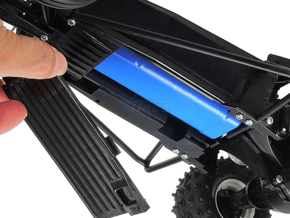 • The longitudinally-positioned battery pack is accessed via a hatch on the underside of the chassis.