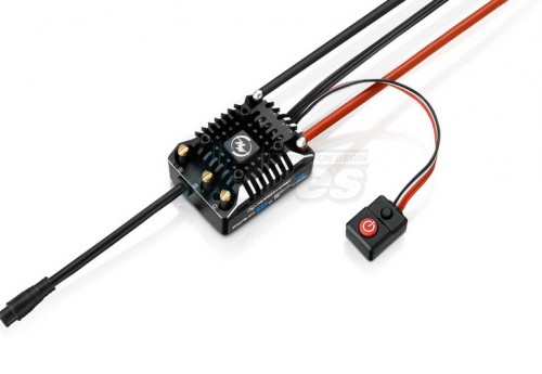 The built-in switch mode BEC with a maximum output of 13A and voltage adjustable between 6V and 7.4V allows the use of various standard servos, high voltage servos and other peripherals.